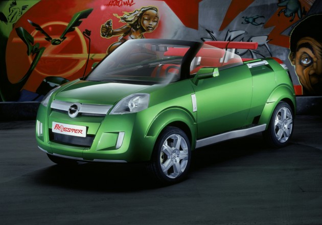Em 2001 a Opel desafiou as convenções dos modelos utilitários ao mostrar o estudo Frogster. Em vez do teto convencional, este automóvel tinha uma “cortina” comandada eletricamente. O conceito modular mostrava também quatro bancos individuais rebatíveis. Com estas características, e graças a comandos simples, os usuários poderiam transformar o Frogster num roadster para dois, num conversível para quatro ou numa pickup.