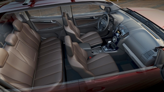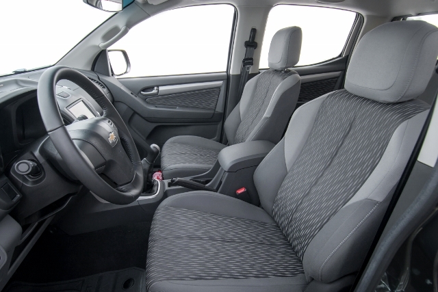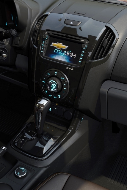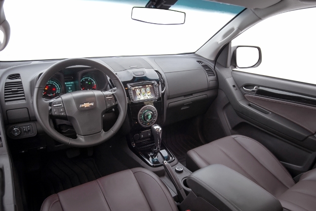 Por dentro a pickup traz o mesmo alto nível de sofisticação do SUV Trailblazer. Os bancos têm forração em dois tons (marrom Brownstone e preto Jet Black), costura pespontada e descansa-braço traseiro. Já o assento do motorista conta com regulagem elétrica de altura, distância e inclinação do encosto.