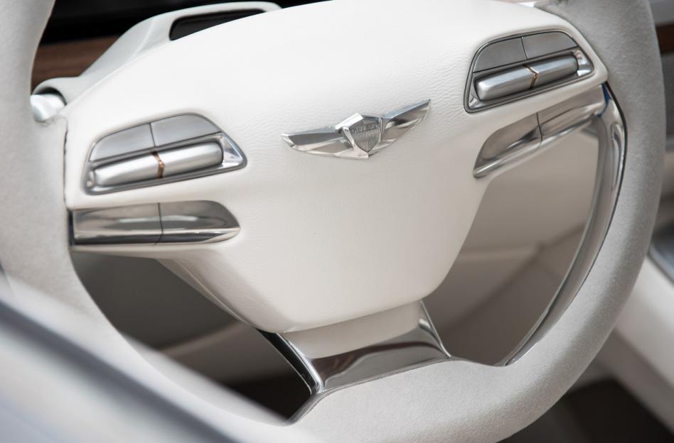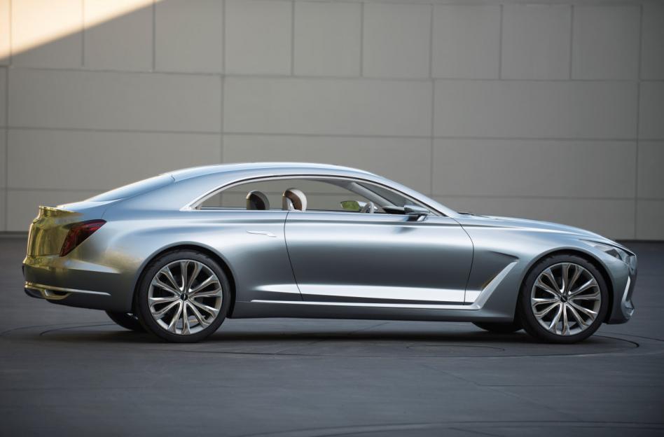 Por fora, o estilo luxuoso é reforçado por detalhes como a grade bem destacada, os faróis afilados, linha de cintura elevada e rodas de grandes dimensões. A ideia por trás do Vision G Concept Coupé é a do “luxo discreto”, algo que é demonstrado pela capacidade do automóvel abrir de maneira autônoma as portas para os ocupantes.