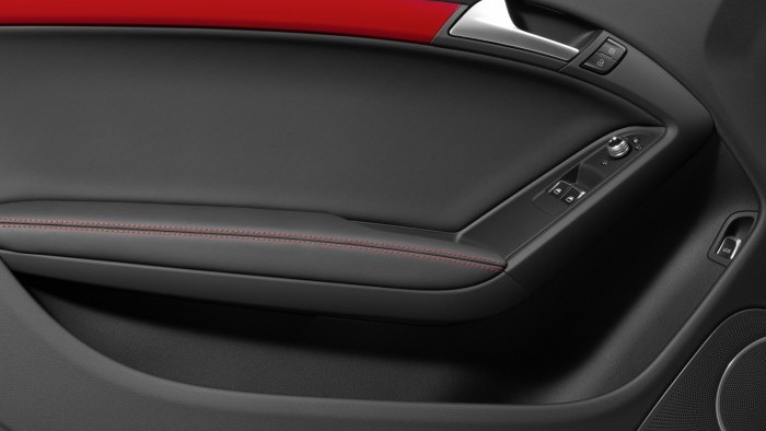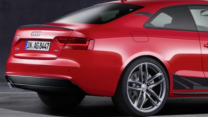 Vários outros detalhes diferenciam este A5, como as entradas de ar frontais maiores, pedaleira de aço e decoração interna e externa bem “Racing”; a série vem em vermelho com faixas pretas e logotipos Audi Sport, Quattro e DTM. Com a porta aberta, uma luz com o logo DTM é projetada no chão.