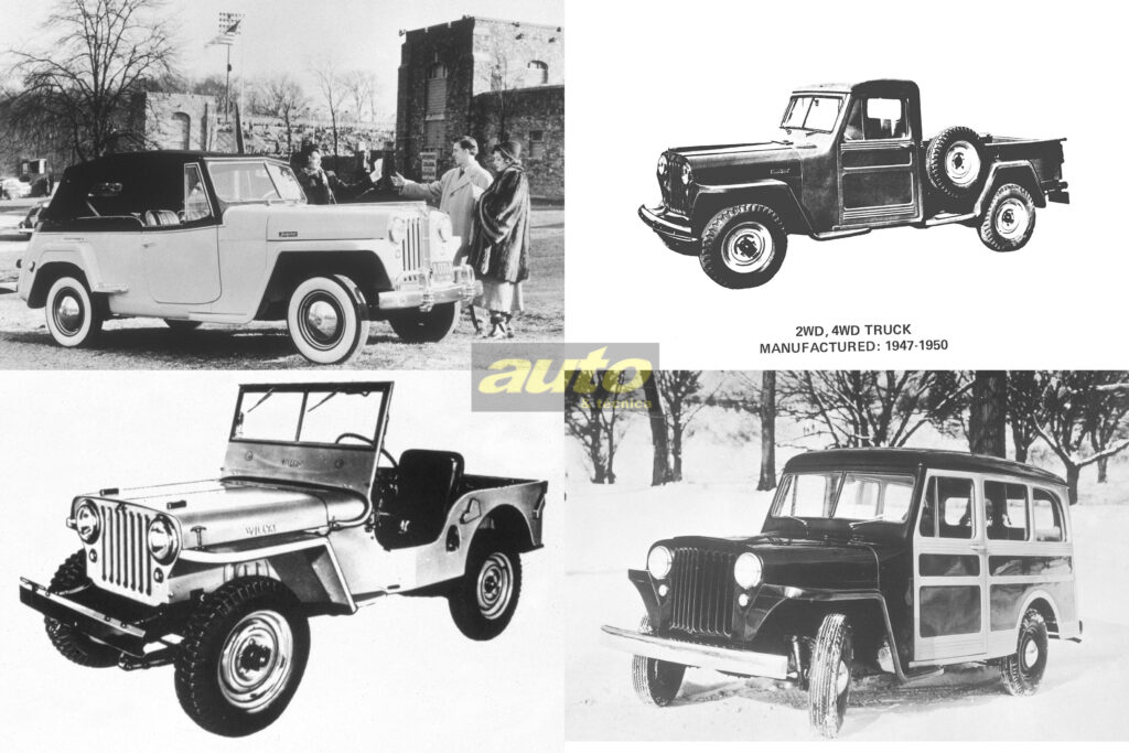 Após o fim da guerra, a Willys lançou o primeiro modelo civil, o CJ-2A (Civilian Jeep), marcando a transição do veículo militar para o uso no campo, na indústria e no lazer. Foi o primeiro a ostentar a clássica grade frontal com sete fendas.