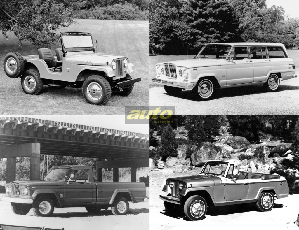 A marca Jeep passou por diversas mudanças de propriedade ao longo das décadas, incluindo a Kaiser Motors (1953), a American Motors Corporation/AMC (1970) e a Chrysler Corporation (1987), que expandiu significativamente a linha de veículos com sucesso mundial (como o Cherokee e o Grand Cherokee). Hoje a marca pertence à Stellantis.
