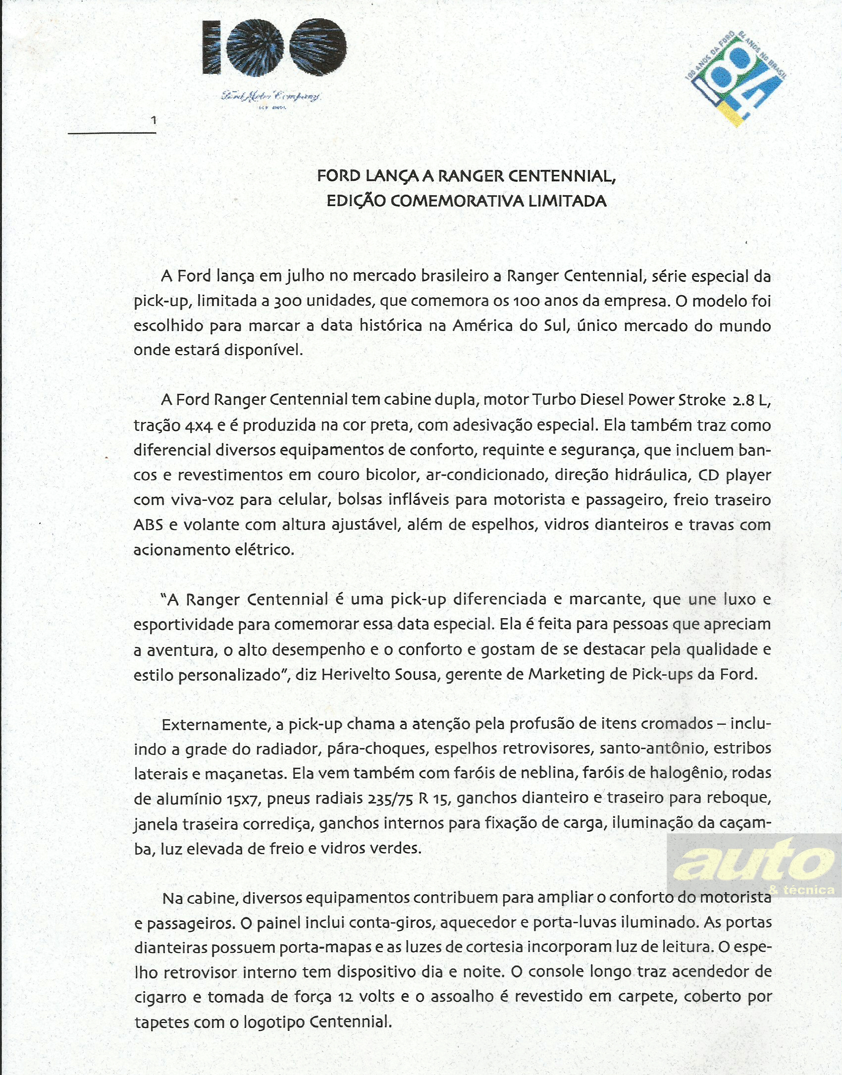 Abaixo você confere o press release da Ford, bem como as fotos oficiais do modelo, mais um material muito interessante recuperado dos arquivos históricos de AUTO&TÉCNICA.