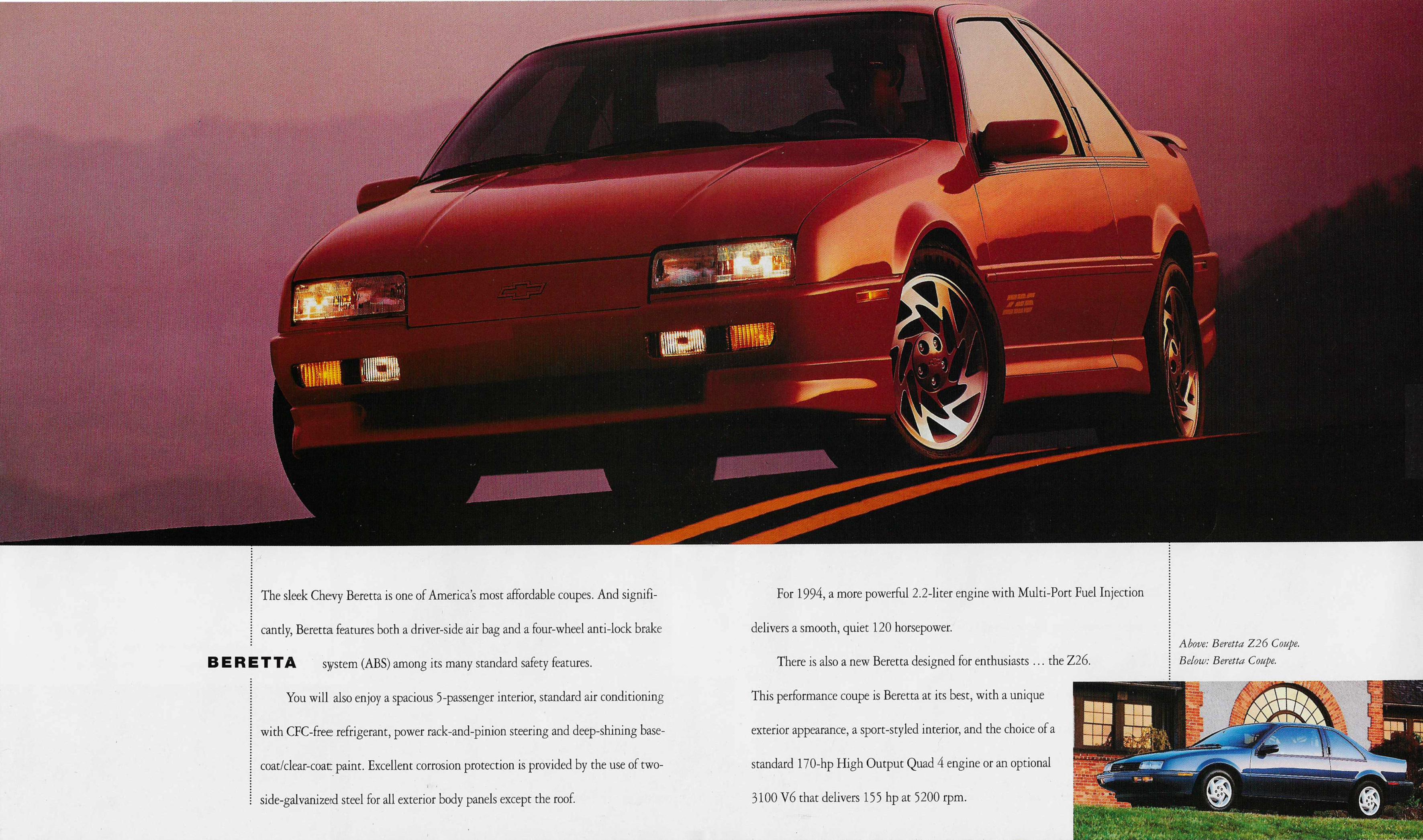 O norte-americano Chevrolet Beretta foi um cupê de tração dianteira, pouco menor que nosso Monza, produzido entre 1987 e 1996. Destacava-se pelo desenho diferenciado para a época, com frente baixa, faróis retangulares estreitos e maçanetas integradas nas colunas das portas. Em 1994 o modelo oferecia motores 2.2 de quatro cilindros com 120 cv de potência, outro quatro cilindros com interessantes 170 cv e um 3.1V6 com 155 cv. Acumulou mais de 900 mil unidades vendidas.