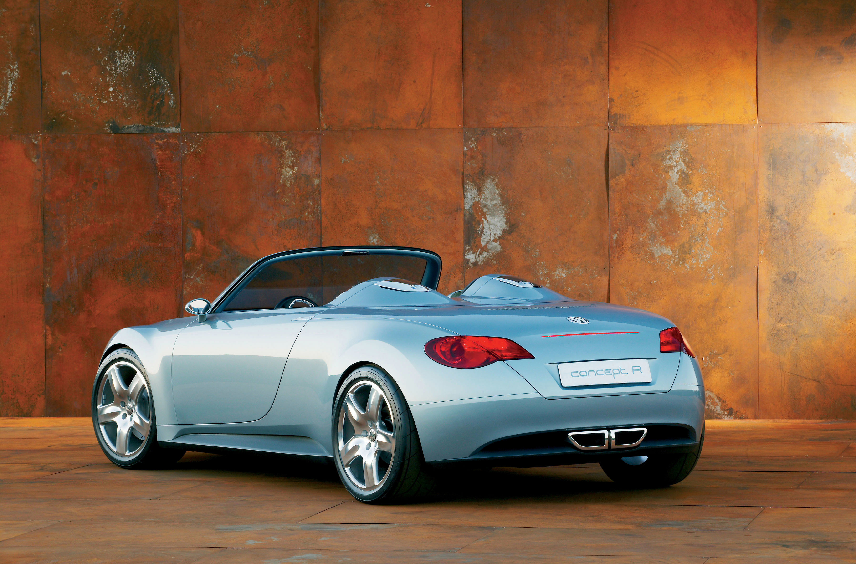 Apresentado no Salão do Automóvel de Frankfurt de 2003, o roadster VW Concept R foi um belíssimo conceito da marca alemã que tinha jeitão de Audi TT e motor 3.2V6 FSI de 265 cv e 35 mkgf de torque máximos, que o levaria a 100 km/h em 5,3 segundos e 250 km/h de velocidade máxima.