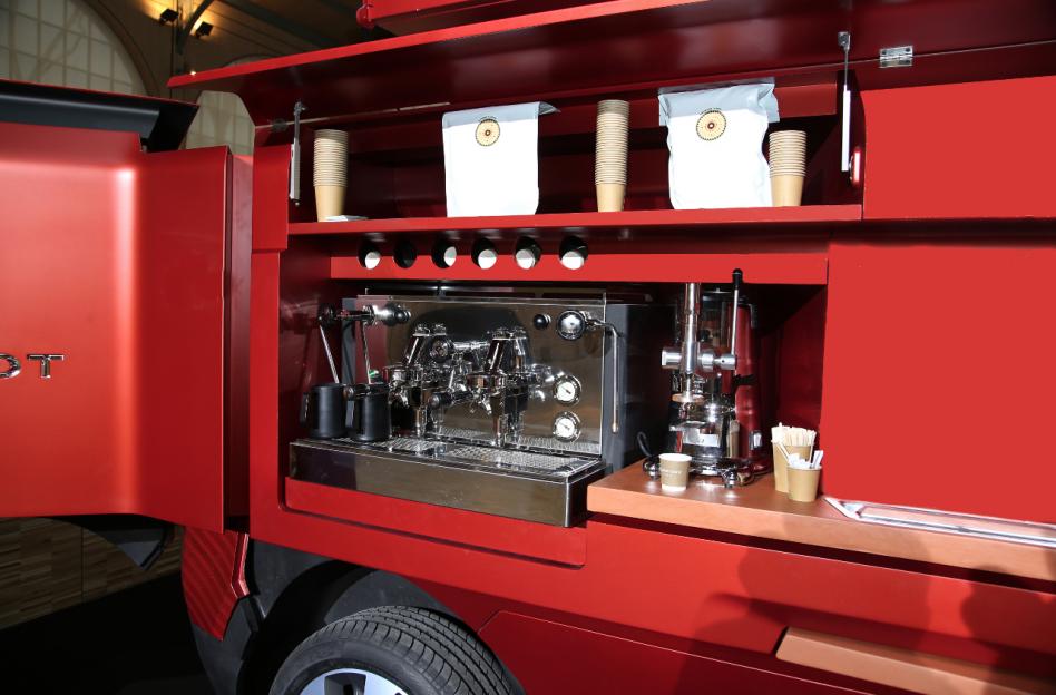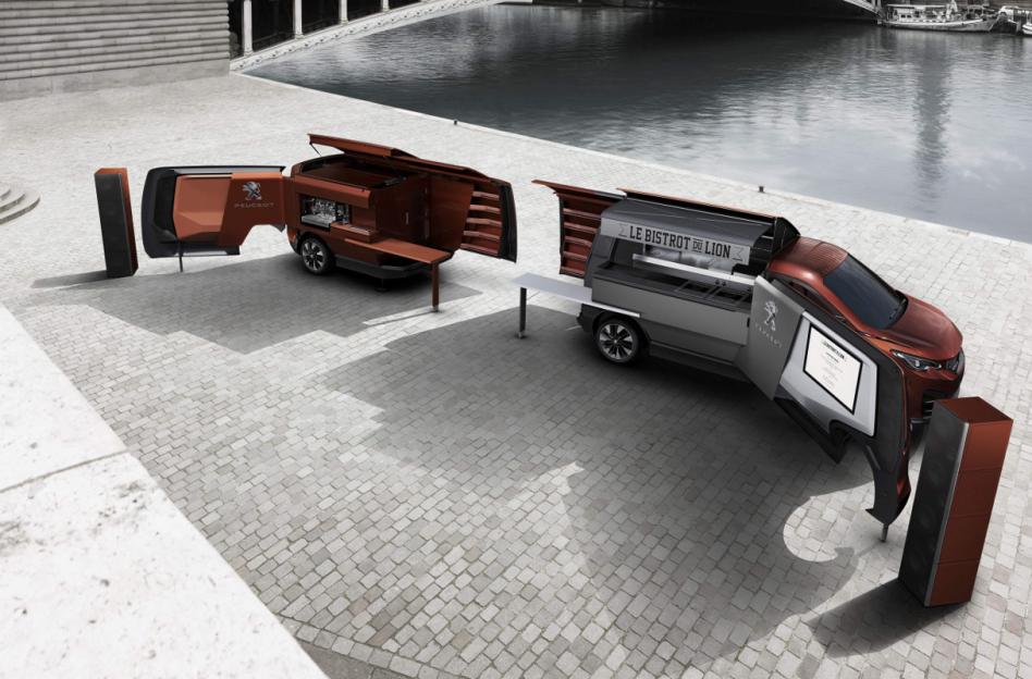 O food truck é 1oo% móvel e, quando imobilizado, abre totalmente as laterais e duplica sua envergadura, para se transformar num verdadeiro anfiteatro. “O food truck deriva desta idéia: um objeto móvel, automóvel, que uma vez imobilizado se transforma num espaço de restaurante nômade, nas formas inéditas de um ‘food truck’”, explicou o diretor de design da Peugeot, Gilles Vidal.