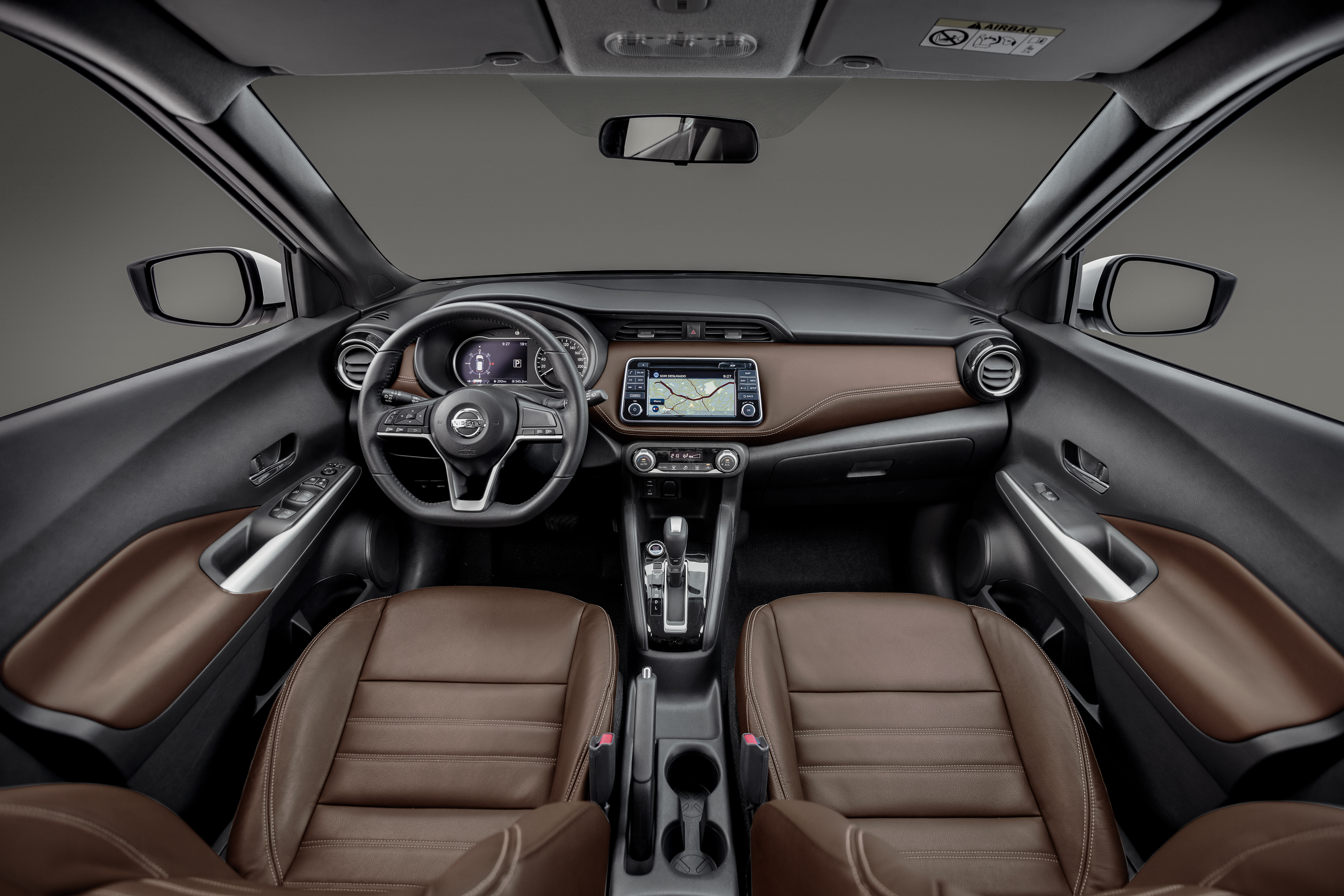 Cada detalhe do interior parece ter merecido atenção especial da Nissan. Como o volante, bem posicionado, cuja ergonomia foi projetada para proporcionar ainda mais firmeza em todas as manobras, de forma natural. O volante tem a base plana (flat bottom) arrematado por acabamento cromado e controles do sistema de áudio e telefone e dos displays de informação para o motorista.