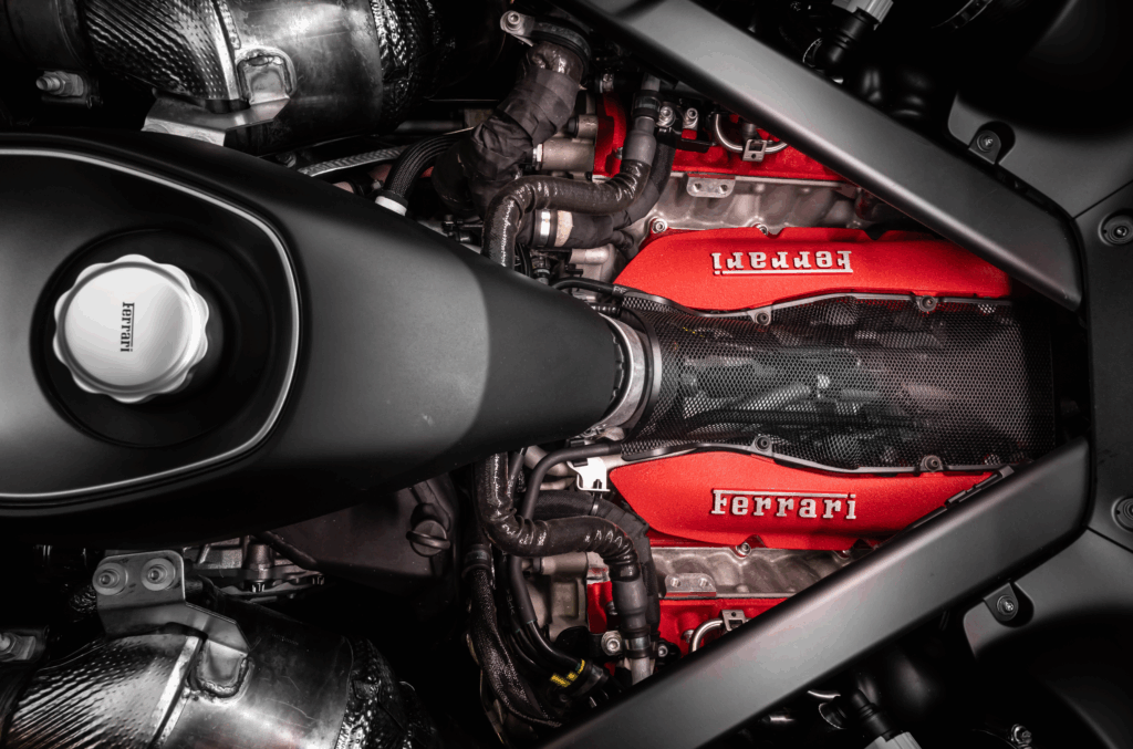 O 849 Testarossa produz 50 cv a mais que o SF90, graças a um novo e maior turbo-compressor (que não é elétrico, como se esperava), cabeçotes revisados, componentes mais leves e engenharia derivada das pistas de corrida. Combinado com dois motores no eixo dianteiro e uma unidade traseira, o carro oferece tração integral sob demanda e distribuição de torque para maximizar a tração, explicou a Ferrari.