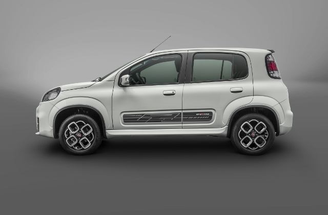 Uno Sporting 1.4: A versão top de linha tem os mesmos itens de série da versão Evolution (menos Start&Stop e rádio com USB/MP3), mais rodas em liga leve exclusivas de 15 polegadas e pneus 185/60, faróis de neblina, ambiente interno na cor preta e também para-choques com desenho exclusivo, sendo que o traseiro traz dupla saída de escape central cromada. Em opcionais, como a versão Way 1.4, ela também traz o câmbio Dualogic® Plus e borboletas no volante para seleção das marchas.