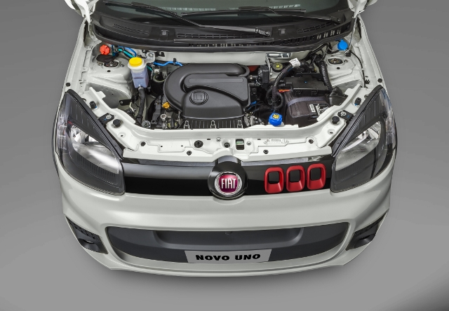 A linha 2015 do Novo Uno chega equipada com os motores de quatro cilindros, Fire Evo Flex 1.0 e 1.4, mas com um diferencial: toda a ancoragem e isolamento acústico da carroceria receberam inovações importantes, para aumentar o silêncio e o conforto a bordo.