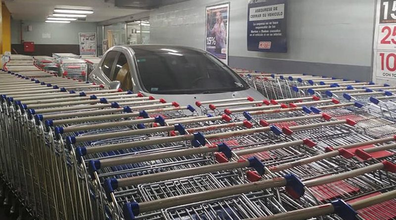 Folgado: argentinos travam carro de espertalhão no supermercado