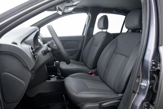 O interior de todos os modelos é composto por novos materiais, o teto agora é escuro, o que dá a sensação de um ambiente mais sofisticado. As portas têm acabamento em tecido ou couro sintético, dependendo da versão. O volante em couro tem detalhes em cromo anodizado, dando um toque de esportividade. Os bancos também são novos e têm outros padrões de revestimentos em todos os modelos, com estilo mais moderno e minimalista. São mais largos e com espumas mais espessas em um formato que garante melhor conforto e ergonomia.A mais importante novidade mecânica é que Sandero, Logan e Stepway com motor 1.6 SCe passam a ter versões com o novo câmbio automático CVT X-Tronic, que agrada aqueles que buscam conforto na condução do dia a dia, principalmente no trânsito urbano. Como este câmbio não tem trocas de marchas (simula seis velocidades), a condução é sempre suave.