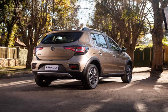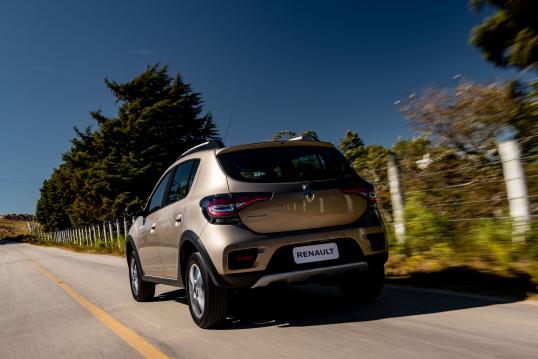 Agora na linha 2020, o modelo está mais robusto, com um novo para-choque dianteiro com apliques em cromado nos faróis de neblina e skis (dianteiros e traseiros) na cor prata, que reforçam ainda mais o visual SUV. As lanternas com tecnologia em LED, com máscara escurecedora, conferem estilo único ao Stepway, com assinatura luminosa exclusiva.