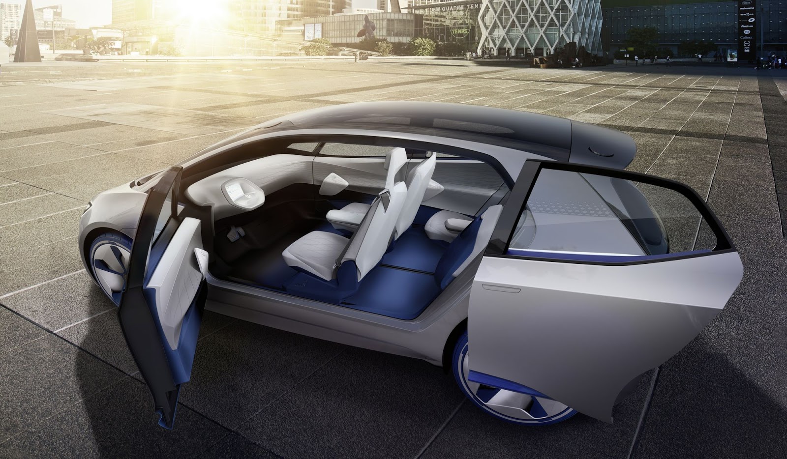 Um pouco mais curto do que o Golf, o ID oferece o espaço interno de um Passat -possível por meio do conceito da nova arquitetura com um motor elétrico sobre o eixo traseiro e uma bateria de alta tensão no piso do veículo, permitindo mais espaço e flexibilidade. Ao mesmo tempo, o ID faz já uma ponte para o ano de 2025, já que é o primeiro concept-car da Volkswagen que será totalmente autônomo no modo “ID Pilot”, bastando para isso pressionar o logotipo da VW no volante para ativar esse modo de condução.