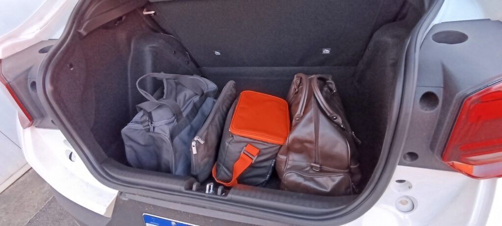 O espaço interno é outro dos grandes trunfos do Basalt. O entre-eixos generoso, de 2,64 m, garante excelente espaço para pernas no banco traseiro, boa largura para três ocupantes e porta-malas de 490 litros (VDA), que está entre os maiores da categoria.