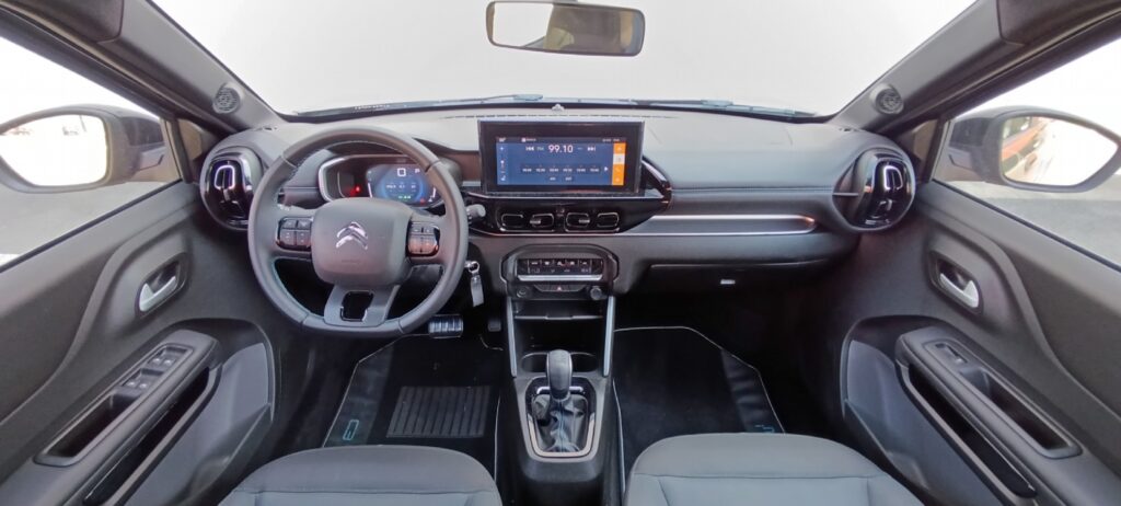 O interior também vem renovado com novos revestimentos nos bancos, apoio de braço do motorista, painel e cabine escurecida. A central multimídia “Citroën Connect Touchscreen” de 10,25 polegadas –a maior entre os concorrentes diretos– passa a trazer bordas ultrafinas e moldura em preto brilhante, deixando o visual frontal mais leve e mantendo o nível de navegação, com espelhamento sem fio de Android Auto e Apple CarPlay. A partir da versão Feel, os comandos de vidros elétricos, localizados entre os bancos dianteiros, ficam também posicionados na porta do motorista.