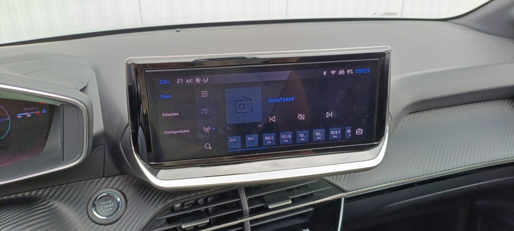 Ao dirigir o 208 Hybrid, a primeira impressão é de refinamento mecânico. Não há aquela sensação de “carro elétrico” típica dos híbridos plenos, mas há um ganho claro de suavidade na condução. O auxílio elétrico elimina também a hesitação típica de motores turbo em baixa rotação. O carro acelera com mais linearidade, em especial no trânsito urbano.