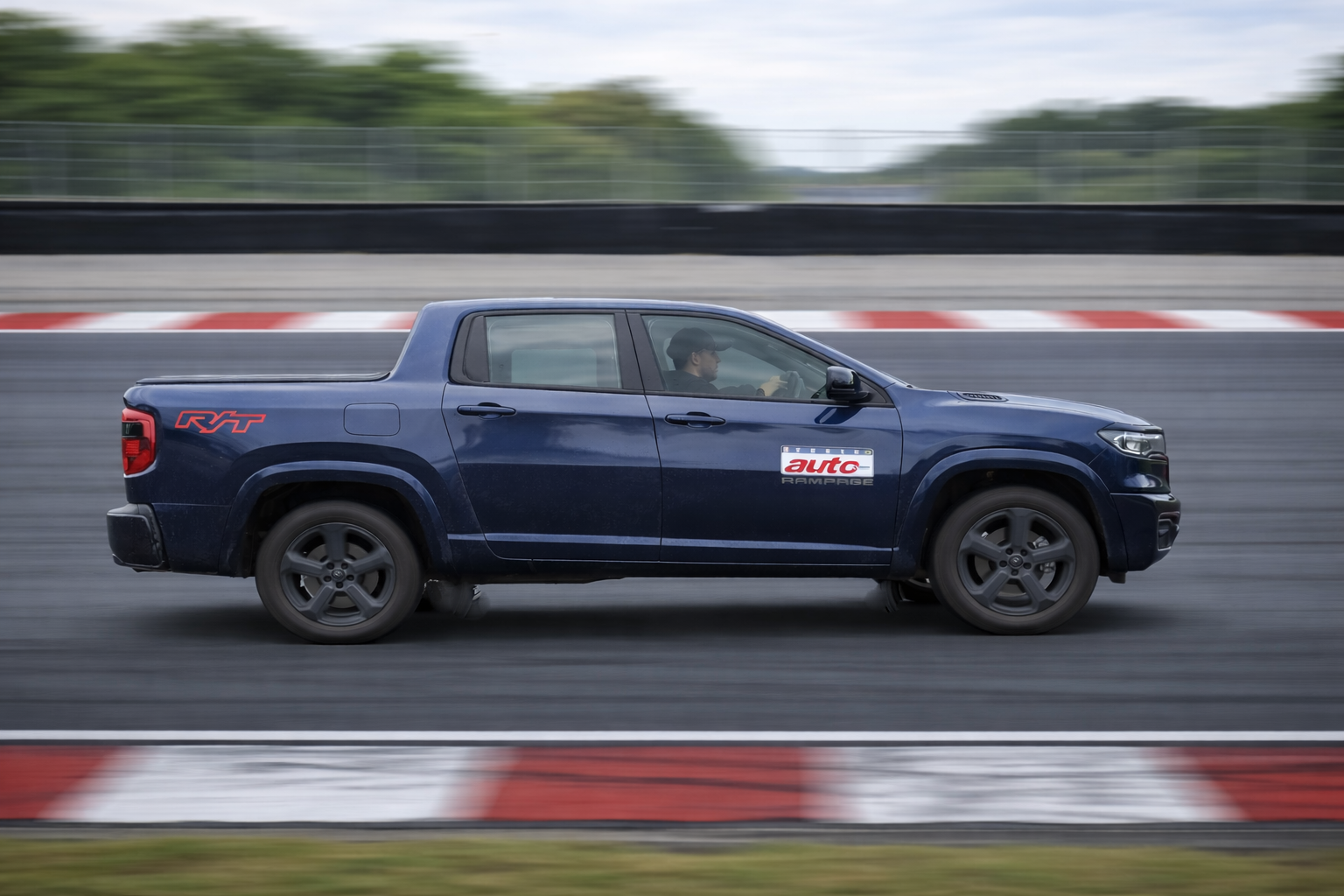 Na prática, isso se traduz em acelerações excelentes para uma picape média e retomadas de velocidade sempre prontas. A Rampage R/T não apenas despacha outras picapes, como acompanha SUVs turbo médios e frequentemente os supera. Ela acelera de zero a 100 km/h em 6,9 segundos e atinge 220 km/h de velocidade máxima.