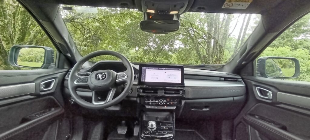 Antigamente havia um anúncio de pneus que dizia que “potência não é nada sem controle”, e a Rampage desenterrou essa máxima. O grande diferencial da Rampage R/T está na dinâmica. Construída sobre uma plataforma monobloco —compartilhada com modelos como o Jeep Compass— a picape apresenta um comportamento muito mais próximo de um SUV do que de uma picape tradicional daquelas com chassi e longarinas. Tudo está realmente sob controle, com boa estabilidade em curvas; conforto mesmo em pisos irregulares, menor rolling (rolagem) de carroceria e direção mais precisa