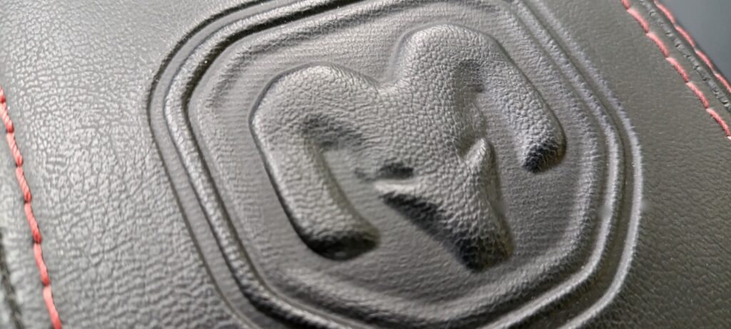 A Rampage R/T não faz questão de esconder sua proposta. O visual é marcado por uma dianteira mais agressiva, com grade escurecida, detalhes em preto brilhante e elementos exclusivos que reforçam o visual esportivo. As rodas de liga leve aro 19, com desenho específico e bem calçadas, preenchem bem os arcos dos para-lamas e ajudam a transmitir robustez sem exageros.