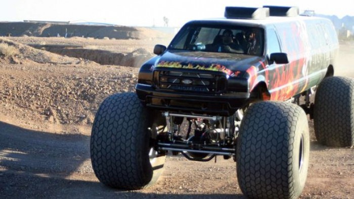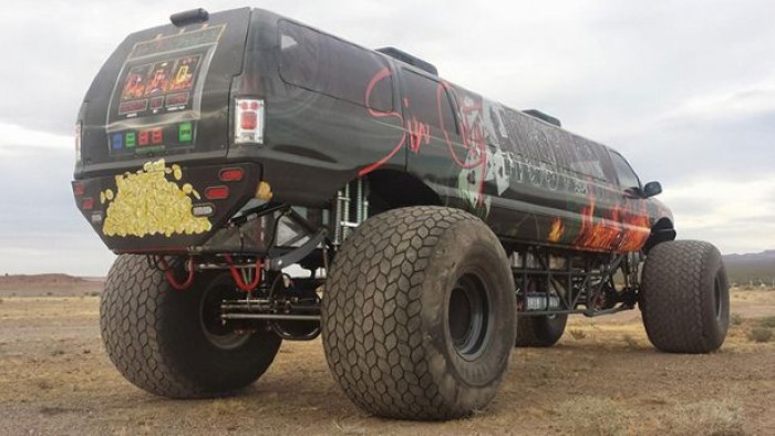 Esta autêntica obra do demônio foi fabricada pela Big Toyz Racing Motors, do Arizona, nos Estados Unidos. Durante a semana, funciona como limusine, para levar as crianças na escola ou ir às compras; mas no fim de semana provavelmente será visto esmagando carros nas famosas provas norte-americanas de Monster Truck.